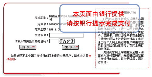 5、进入银行网站,开始支付,以下以工商银行为例,其它类似